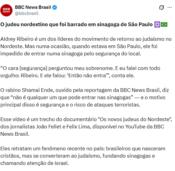 brazilians hate jewsjust look at the commentshttps://x.com/bbcbrasil/status/1995123146798637476