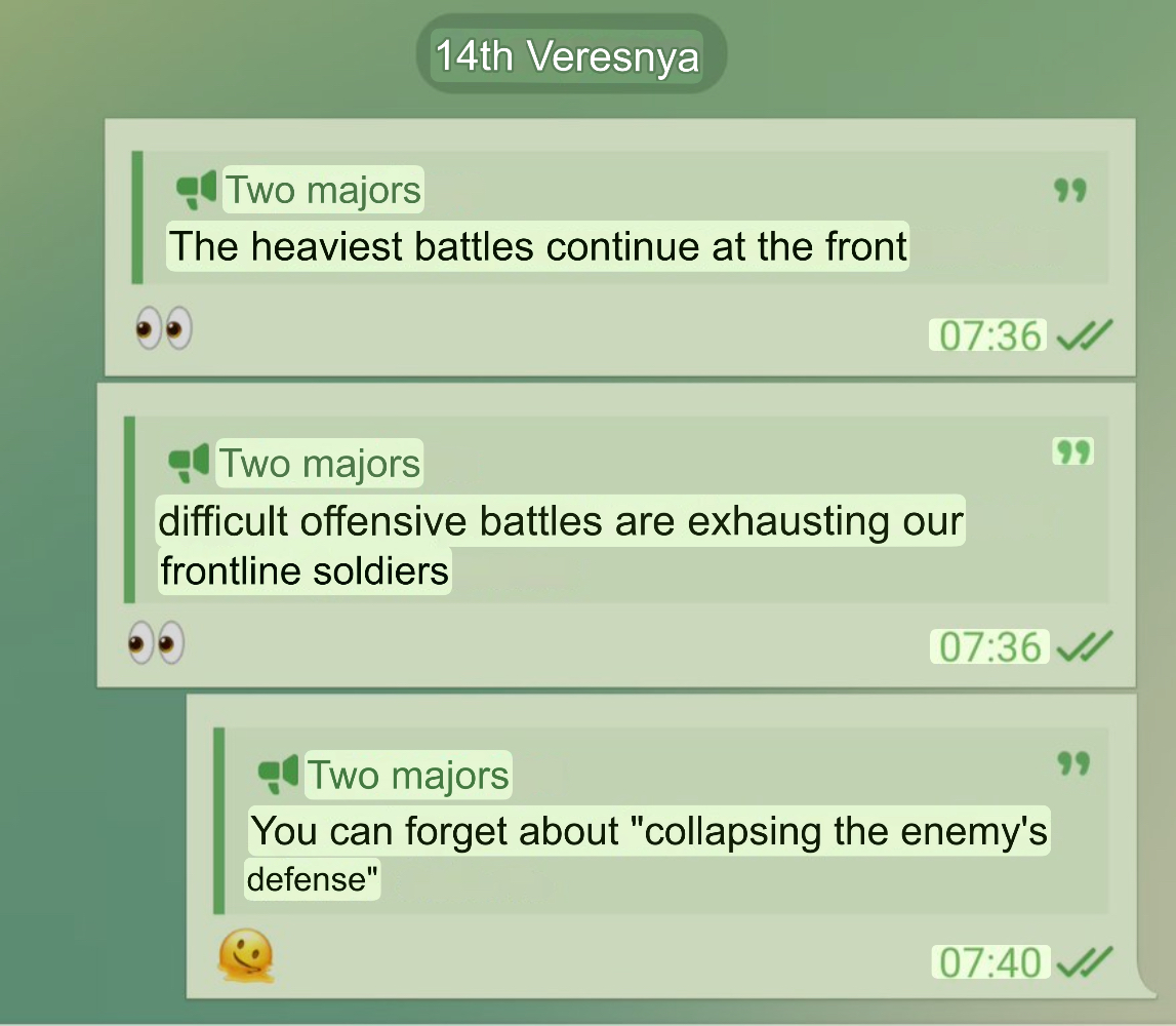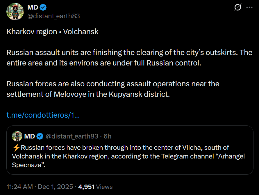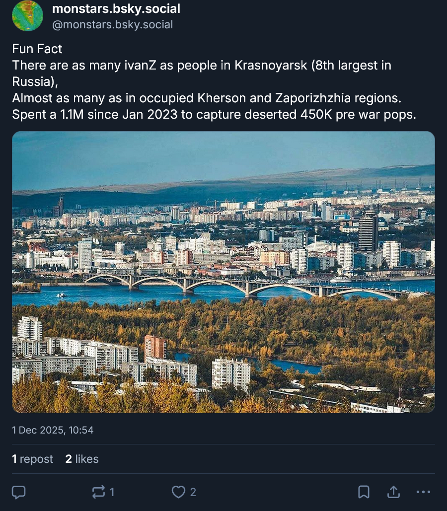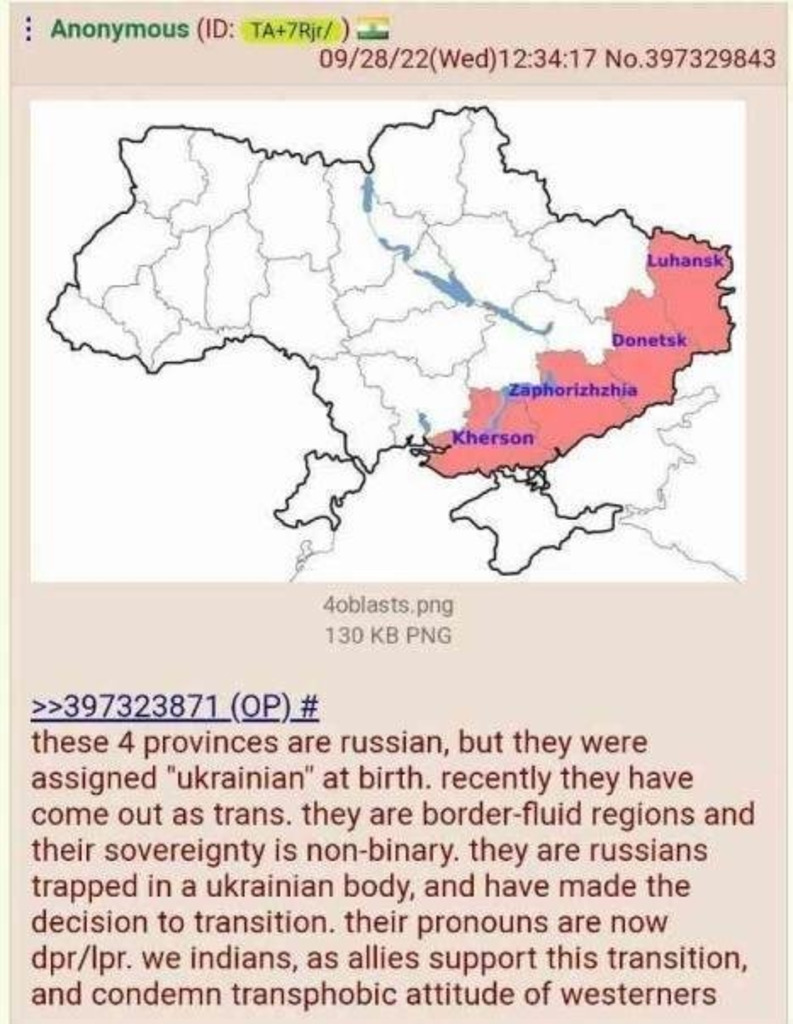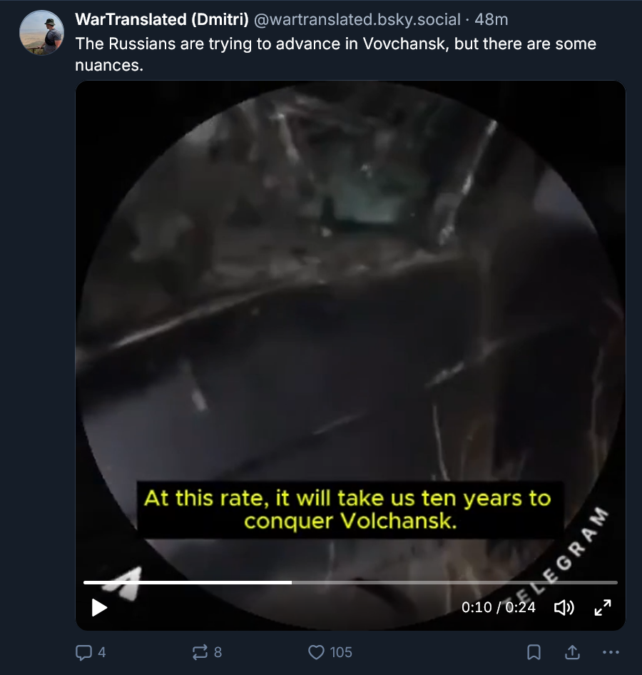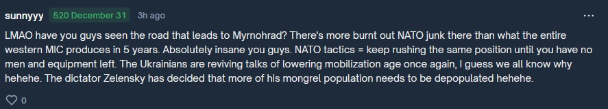 Previous: >>522624899Day 1,377 – Daily assessment: https://understandingwar.org/analysis/russia-ukraine/#research▶Latest>Novorossiysk port is closed due to AIDS>Ukrainian forces successfully used the Sting interceptor drone to down russian jet-powered long-range drones>Another russian shadow fleet tanker sinking under its own power (this time near Senegal)>russia loses ability to send people into space after another disastrous failure>Ukis advance in the Lyman direction>The russian, "bunny ears" offensive has now concluded, resulting in a total russian defeat>Ivanivka has been liberated>Ukrainian forces struck overnight Afipsky refinery, Beriev aircraft plant in Taganrog where Tu-95 bombers are modernized sparking fire in the repair shop, and destroyed a 5000-cubic-meter tank at Tuapse oil terminal, General Staff reported>Drones of the Security Service of Ukraine hit two sanctioned russian tankers in the Black Sea>russia test fired one of it's SARMAT ICBM from the Yasniy firing range in the Orenburg region. The test launch failed miserably breaking apart just mere minutes from launch following which it smashed into the ground.>Chairman of the Office of the President Yermak has submitted his resignation - Zelenskyy>Strikes at Saratov oil refinery and UAV storage site at Saky airfield, as well as other military facilities - AFU>Barracks of Akhmat-North Unit droned in Grozny>Chasiv Yar has gone from russian victory, back to ONGOING>Ukraine struck Cheboksary plant which makes EW and missile components▶Telegramhttps://rentry.org/telosint2023https://t.me/ukr_pics▶Intelhttps://t.me/DeepStateENhttps://odin.tradoc.army.mil/WEG (equipment explorer)https://ukr.warspotting.net (visually confirmed losses)▶Mapshttps://deepstatemap.live/enhttps://liveuamap.com/en▶DISPOSABLE SOLDIER (diary of a RU mobik)TOUR 1: files.catbox.moe/34fuhc.txtTOUR 2: files.catbox.moe/uj2wut.txtTOUR 3: files.catbox.moe/hmyd98.txtTOUR 4: files.catbox.moe/cdenxe.txt