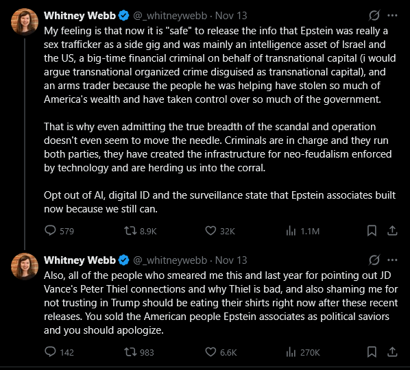 >>522639107I'm surprised they haven't silenced Whitney Webb yet.