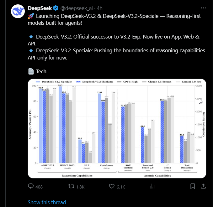 >>522640386>However, DeepSeek admits in a new technical paper on its latest models that closed-source proprietary models have advanced more rapidly over the past year than open-source models. This prompted DeekSeek to reevaluate how to push the boundaries of open-source large language models.Per seekingalpha