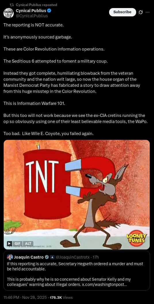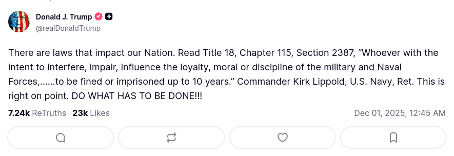 >>522659486Pointing out the law to the military isn't sedition>>522659561Reminding members of the military of the law is not an attempt to "drum up dissent".
