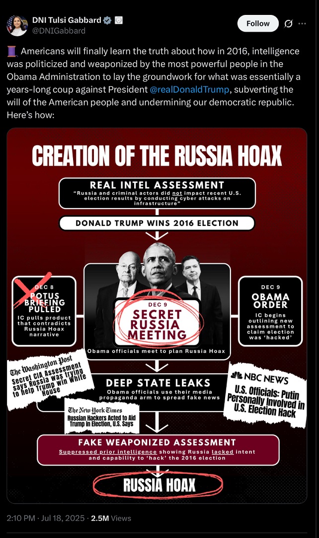 Reminder that the Obama Democrats/deep state ran a decade-long coup attempt against Donald Trump, and it's the biggest scandal in US history.And it's not going away.
