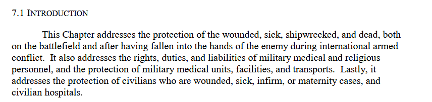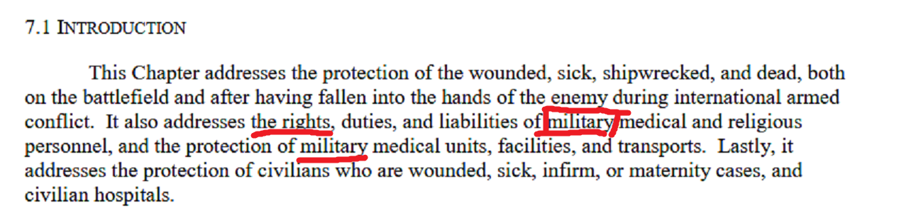 >>522660130He wants to lean on his bullshit interpretation of it and hope nobody knows better, which is why he never posted this part here:>>522658551Fron the introduction to that section, which clarifies that the RoEs apply to MILITARY of enemies in INTERNATIONAL CONFLICT.