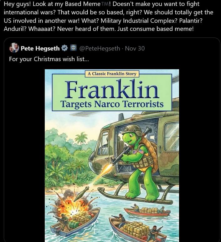 >>522686332This is just the next narrative. It's no coincidence that there's suddenly a supposed "war crime" just a week after "illegal orders". They'll go back to epstin again until the next narrative after this one falls apart, like always.