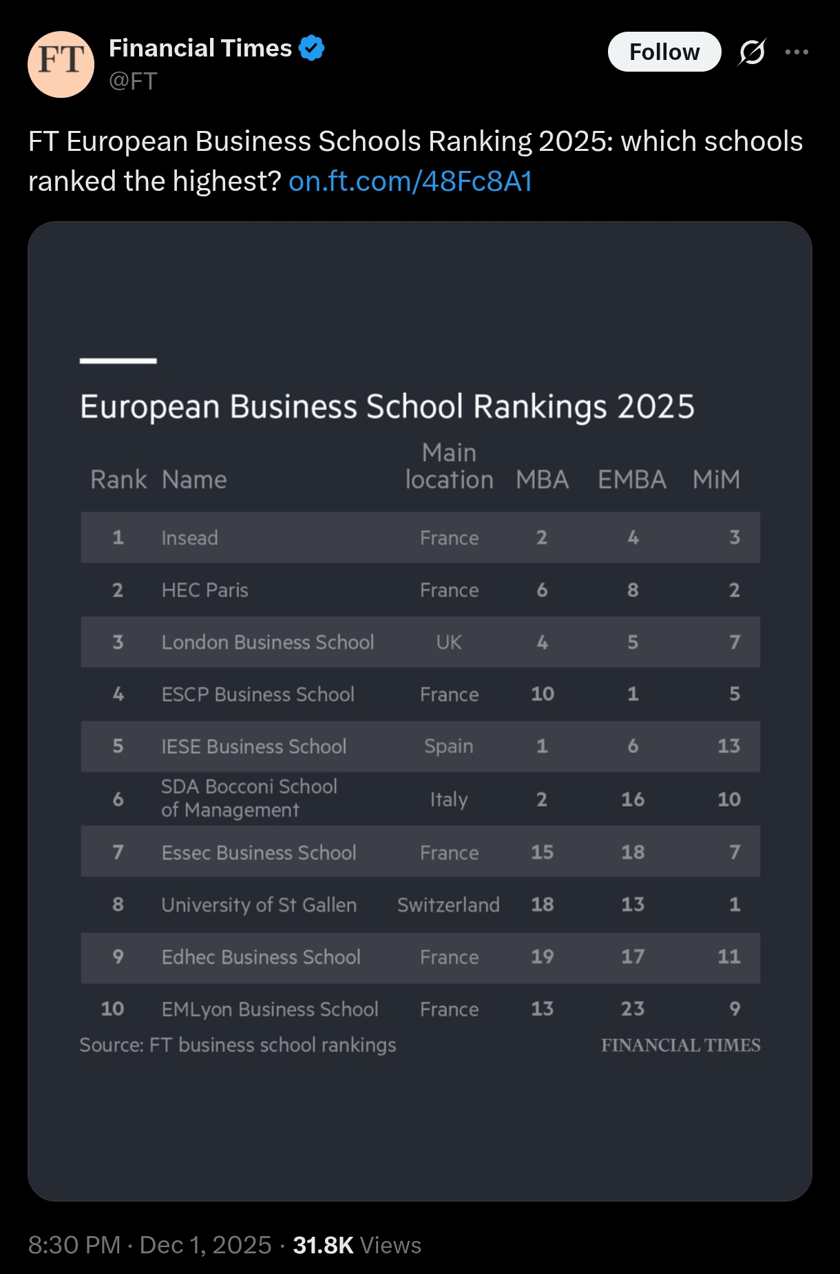 >Russia not in top 10 European business schoolIt's oyvir for Putler
