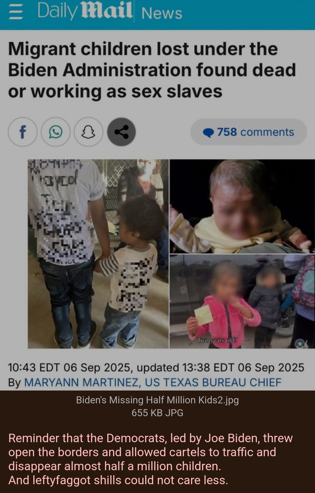 >>522798094"These heartless smugglers treat human beings as mere commodities, endangering lives for quick cash," Texas DPS stated, slamming the criminal networks that thrive under the Biden-Harris administration's open-border approach. With Interstate 35 serving as a notorious pipeline for illegal crossings from the border to major cities like San Antonio, this bust is just one of thousands under Governor Greg Abbott's Operation Lone Star – a state-led initiative stepping up where the feds have failed.U.S. Customs and Border Protection data paints a grim picture: Over 700 migrant deaths linked to vehicle smuggling since 2017, including the horrific 2022 San Antonio tragedy where 53 perished in a sweltering trailer. Critics argue these tragedies stem directly from weak enforcement and sanctuary policies that encourage illegal entries.The 23 apprehended individuals were handed over to Border Patrol for deportation processing under Title 8. Details on their ages and backgrounds remain limited, but the mix of adults and minors raises alarms about family separations and exploitation by traffickers.As Texas continues to bear the brunt of Washington's inaction, Operation Lone Star has racked up impressive results, including millions in seized drugs and thousands of criminal arrests. With Amaya now detained in La Salle County Jail awaiting trial, this case sends a clear message: Texas won't tolerate the invasion at our southern border.2/2