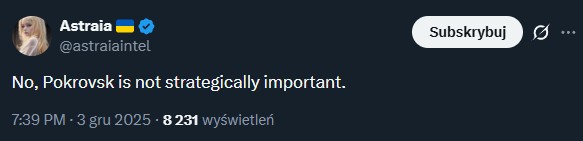 wow, that's pretty much THE ONLY source I've seen, neutral, pro-ukrop, pro-rus, or OTHERWISE, that does NOT already show Pokrovsk as FULLY liberated.