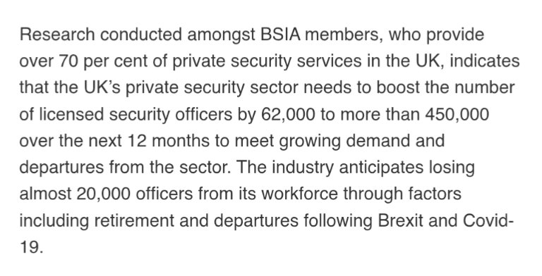 >The need for security guards is being driven by both increasing crime, and Gov legislation, notably the "Assaults on retail workers (offences) bill" and "Martyn's law".>With surging demand, it's no surprise that people are hiring more cheap foreigners to keep prices down.> Mass import foreigners> They do crime> Legislate to reduce the burden of crime on police> Hire foreigners as security to stop crime > They do crime