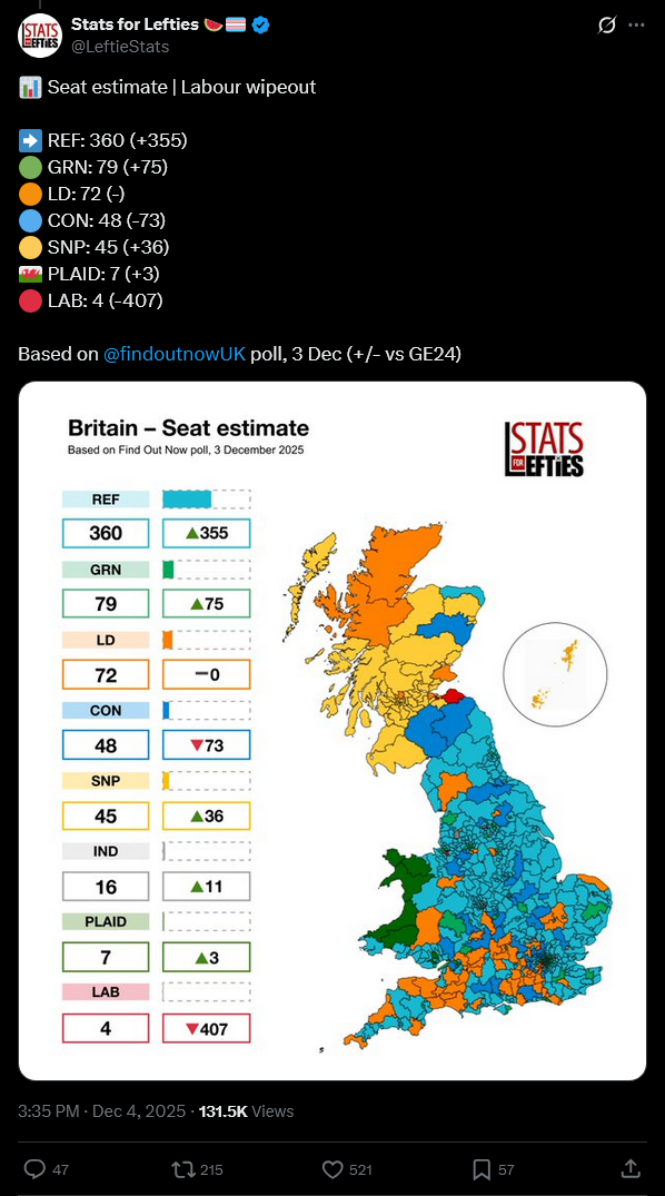 >>522906670Labour's lost the working class vote to Reform and it's lost the leftist vote to Green. Only demographics it's got left are bennie takers, muslims and public sector workers.And it's acting accordingly.