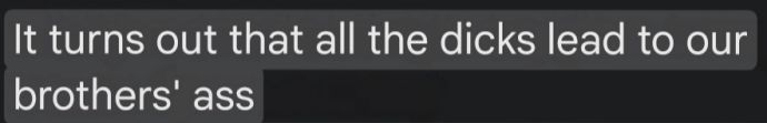 >>522922583correct, all the dicks lead to our brothers' ass.Z.