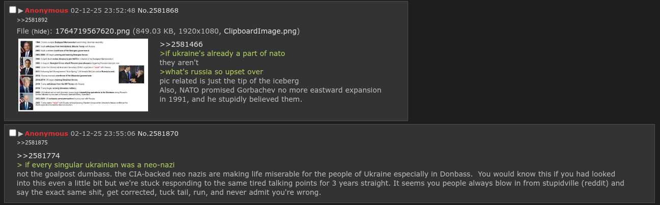 >>522937772>I do believe though that there are people in the western world who are dumb enough to believe vatnik propaganda as well.sadly yes, but on 4chan they almost always slip up and get revealed as a zig/pajeet