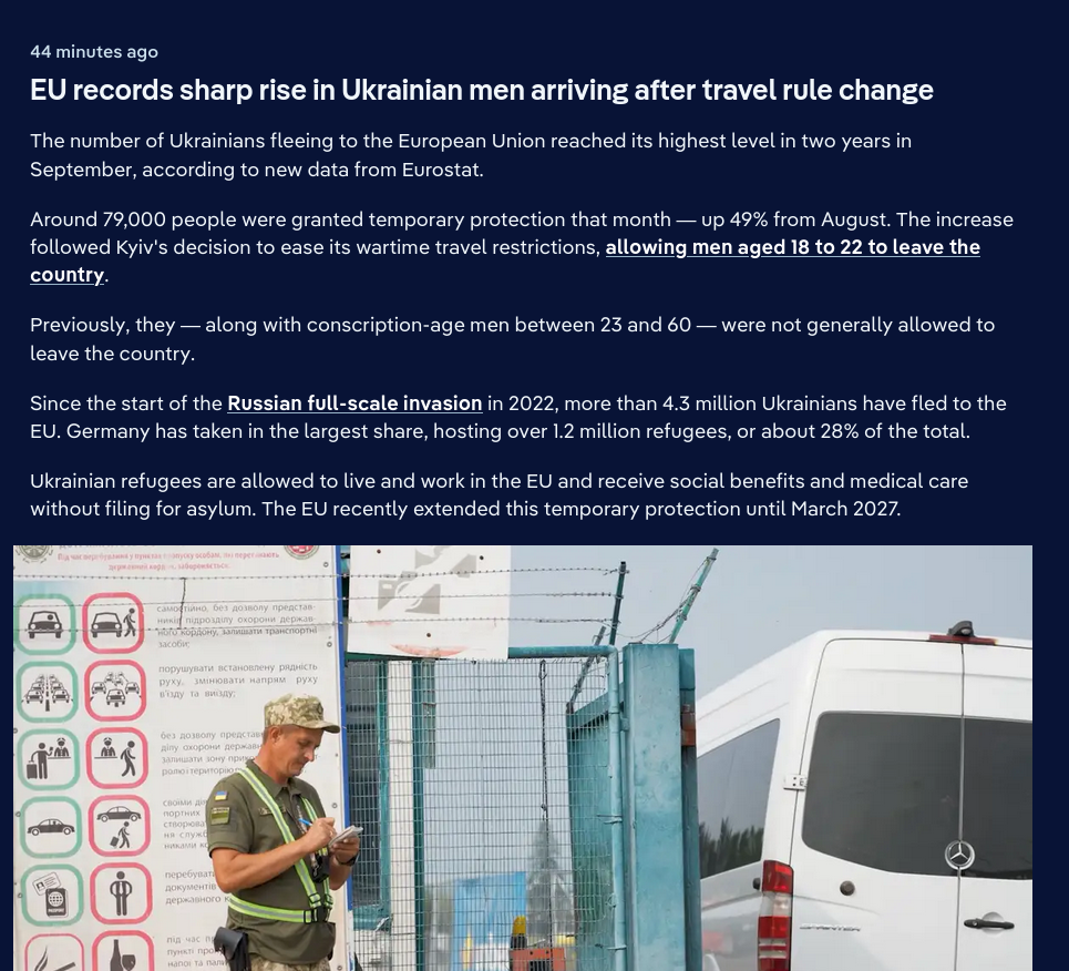 Previous: >>522911015Day 1,381 – Daily assessment: https://understandingwar.org/analysis/russia-ukraine/#research▶Latest>Russia says Ukrainian attack caused fire at Azov Sea port of Temryuk> Syzran Oil Refinery in Samara Hit by Ukrainian Drones>russian forces pushed to the Northern outskirts of Kupyansk>russian general admits that the war has not gone according to plan, and was surprised to find that the Ukrainians did not greet them as liberators>160k+ named and verified dead vatniggers t. Gorushko>Fourth pidor tanker sinking, company ceasing all operations in russia in response>Germany's Lt Gen Freuding says comms with Pentagon cut-off>Novorossiysk port is closed due to AIDS>Ukrainian forces successfully used the Sting interceptor drone to down russian jet-powered long-range drones>Another russian shadow fleet tanker sinking under its own power (this time near Senegal)>russia loses ability to send people into space after another disastrous failure>Ukis advance in the Lyman direction>The russian, "bunny ears" offensive has now concluded, resulting in a total russian defeat>Ivanivka has been liberated>Ukrainian forces struck overnight Afipsky refinery, Beriev aircraft plant in Taganrog where Tu-95 bombers are modernized sparking fire in the repair shop, and destroyed a 5000-cubic-meter tank at Tuapse oil terminal, General Staff reported▶Telegramhttps://rentry.org/telosint2023https://t.me/ukr_pics▶Intelhttps://t.me/DeepStateENhttps://odin.tradoc.army.mil/WEG (equipment explorer)https://ukr.warspotting.net (visually confirmed losses)▶Mapshttps://deepstatemap.live/enhttps://liveuamap.com/en▶DISPOSABLE SOLDIER (diary of a RU mobik)TOUR 1: files.catbox.moe/34fuhc.txtTOUR 2: files.catbox.moe/uj2wut.txtTOUR 3: files.catbox.moe/hmyd98.txtTOUR 4: files.catbox.moe/cdenxe.txt▶12 min vid of ziggerdeath in one ditch (Pokrovsk area) 28 killedhttps://files.catbox.moe/sxbxfb.mp4 (embed)