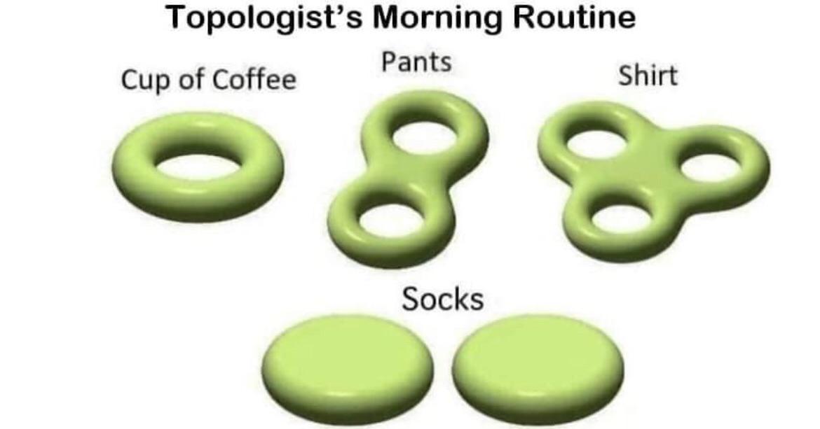 >>523189375Topologists see objects as equivalent if one can be smoothly transformed into the other (e.g., a coffee cup to a donut)