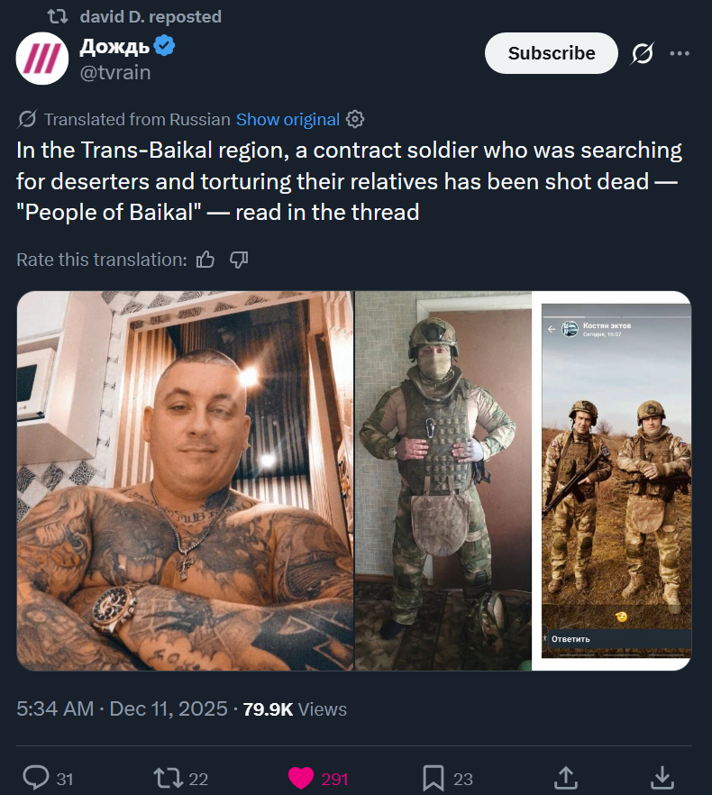 Previous: >>523480725Day 1,389 – Daily assessment: understandingwar.org/analysis/russia-ukraine/#research▶Latest>The Izyum–Sloviansk highway is now fully covered with anti-drone netting>Syrskyi: AFU liberated 16 square km in northern Pokrovsk>Ukraine has begun using its domestically built Sapsan ballistic missile>SBS drones broke a new record of 579 hits in a day>Yaroslavl refinery on fire>Rare russian AN-26KPA laboratory aircraft hit by Ukrainian drones>EU decides to keep russian assets frozen, Orban sidelined and cucked>Zelenskyy arrived in the Kupyansk direction to congratulate the military on the Day of the Ground Forces>Big counteroffensive in Kupyansk, about 200 russniggers encircled>russia urgently intensifies activity in trannystria, reservists called up and drone production/training launched>5th pidor tanker sunk, eternal float>The AFU raises the Ukrainian flag in the centre of Pokvorsk>putin agrees to import unlimited indians to make up for the lost troops in Ukraine (and pidors deny it lmao)>russian military An-22 transport aircraft crashes near moscow with no survivors>geolocated footage shows Ukrainians have recaptured central Pokvorsk and are now fighting south of the railway>In 2026 citizens of russian who are in the reserve to undergo military training in the armed forces of russia>Zel: No surrender of Donbas>2 pidor pilots suicide by seat ejection whilst stationary at base▶Telegramhttps://rentry.org/telosint2023https://t.me/ukr_pics▶Intelhttps://t.me/DeepStateENhttps://odin.tradoc.army.mil/WEG (equipment explorer)https://ukr.warspotting.net (visually confirmed losses)▶Mapshttps://deepstatemap.live/enhttps://liveuamap.com/en▶DISPOSABLE SOLDIER (diary of a RU mobik)TOUR 1: files.catbox.moe/34fuhc.txtTOUR 2: files.catbox.moe/uj2wut.txtTOUR 3: files.catbox.moe/hmyd98.txtTOUR 4: files.catbox.moe/cdenxe.txt▶12 min of TZD in one ditch (Pokrovsk area) - 28 killedhttps://files.catbox.moe/sxbxfb.mp4