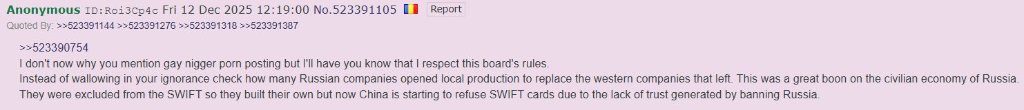 >>523497844Internet edgelords aren't representative of reality. Most Russians understand that Ukrainians are only cannon fodder and that the USA is the real enemy.