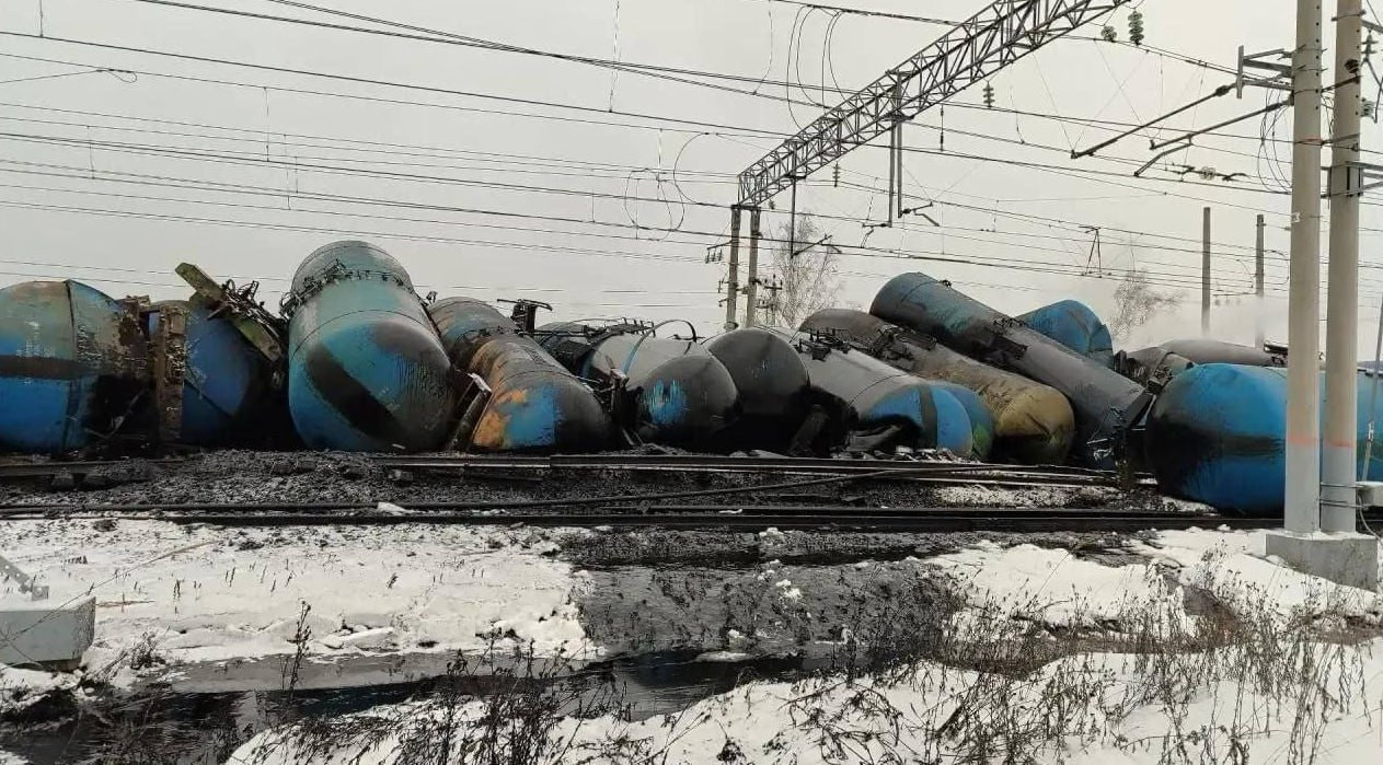 Tank cars derailed in Russia. Unfortunately train didn't go boom.