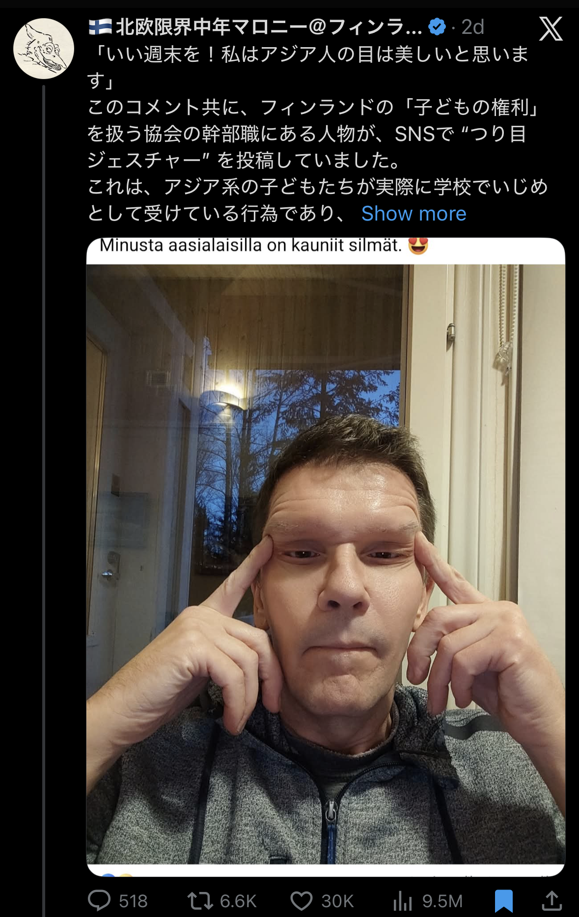 meanwhile Japs keep whining about some woman in Finland making chinky eyes