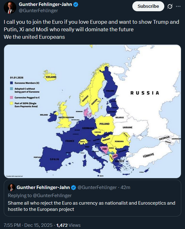 And it'll be easy to debank anyone who even as much as tries to help him with a gift of cash if Eurocrafts find out.