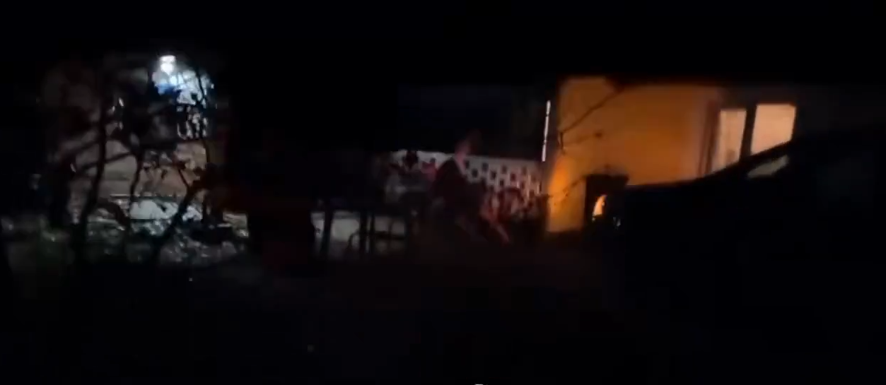 the guy coming out of his home is clearly injured. you can see it in his walk and he is also wearing orthopedic braces.