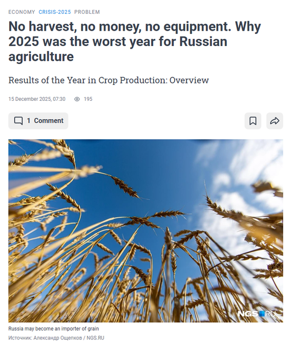 >Trillions in injections into the military-industrial complex support employment and industrial activity, but do not create any long-term assets such as highways, power plants or schools. As a result: the economy becomes busier, but also poorer with each year of war, Prokopenko notes. Rosstat data confirms that industries outside the military-industrial complex are plunging deeper into depression. In the third quarter, clothing production in the country fell by 5.4%, furniture - by 9.7%. The decline in metallurgy reached 6.9%, in the chemical industry - 0.7%. The production of petroleum products decreased by 3.5% after drone attacks on oil refineries, which affected more than 40 factories throughout Russia. For the first time in 15 years, food production began to decline - by 0.2% in the third quarter and 0.8% in January-October. Of the 24 industries, 17 are in recession, and they account for almost 80% of all goods produced in the country, according to calculations by the Institute of Applied Sciences of the Russian Academy of Sciences.