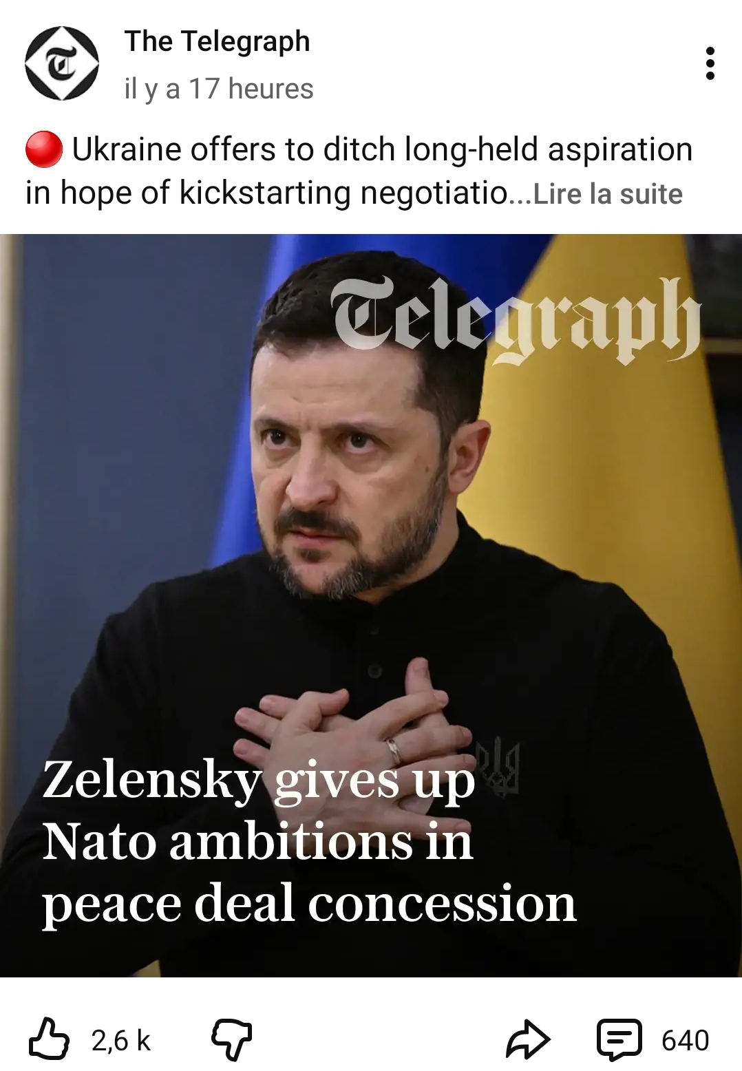 >Zelensky offered to drop NATO membership for Article 5-style security guarantees