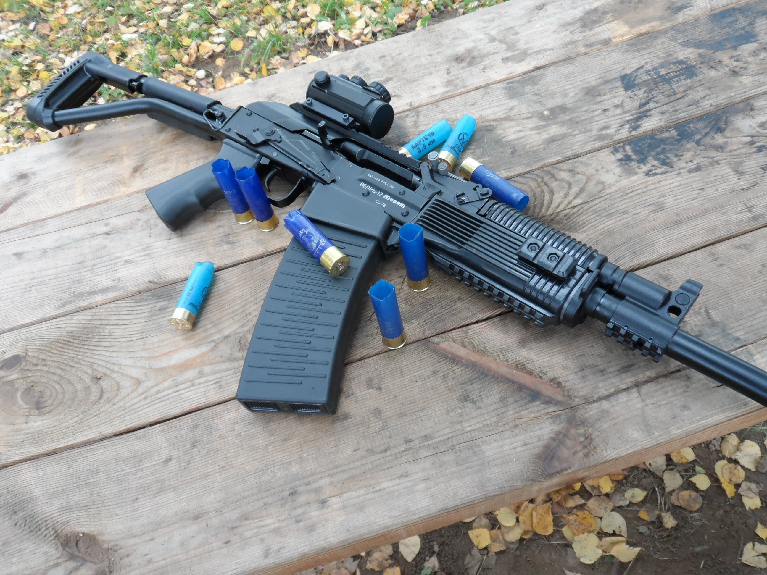 >pose with guns (likely replicas)