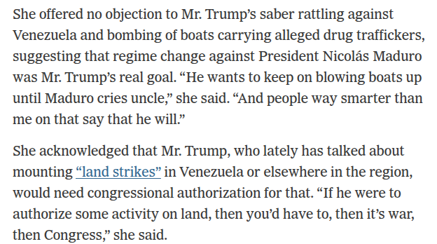 Lol, according to Trump's political advisor, Susie Wiles, Trump really believes exploding random boats in the Carribean is going to make Maduro step down.