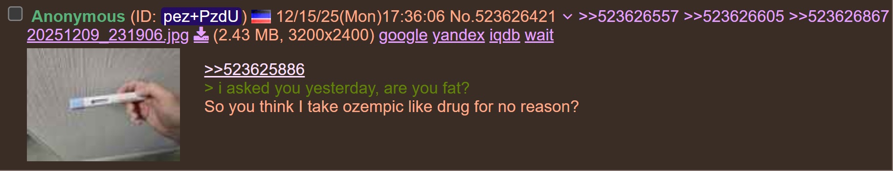 >>523707863> You're injecting yourself with jewish juices now, instead of fixing your garbage diet and taking methylene blue?Yes. Once a week. Did that today.