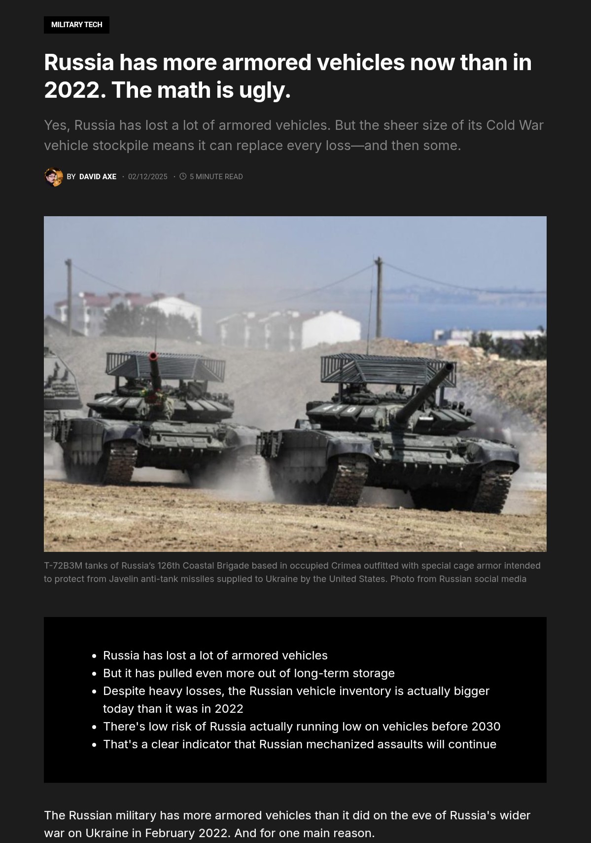 >>523713734Turns out the OSINT pixel counters were wrong on muh warehouses as if production volumes of BMP-3 and T-90M haven`t scaled up massively