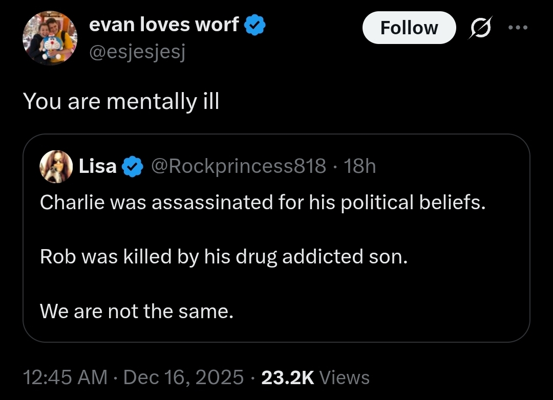 Trump's Rob Reiner comments were dispicable and an embarrassment to the office of the President.What a sick and deranged "man" he is.