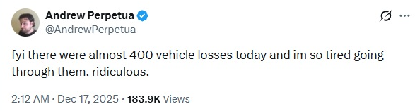 >>523826030400 vehicles in a single day, lmao russians are such a bunch of retardshalf of them are likely motorcycles but still, 400, wtf