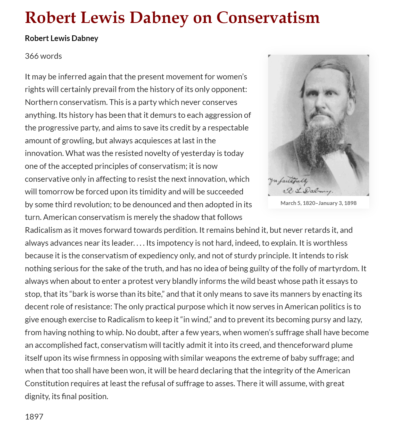 Cuckservatives don't believe in anything and are entirely performative while the left actually believe in things and always run roughshod over them. Dabney is undefeated