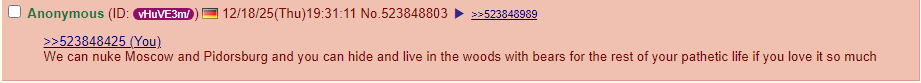 >>523845508>russia dindunuffin>Your country must be nuked by Russia.kek