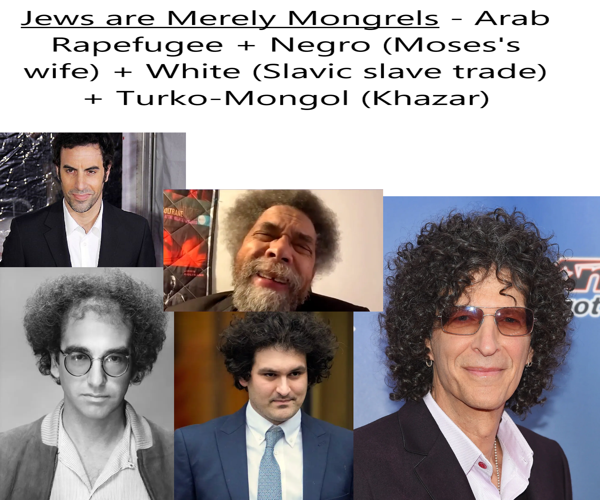 >>523856720I can point out he flaws but it always ends up with bc of the jew. One such example of why cancer cure isn’t released. Not bc we don’t already have it(which we do) all medical is being jew exploited by insurance(scams) cure isn’t less profitable than treatment. It’s a fundamental difference in world view. You think it better for everyone to work together, they would be happy being the rulers of mongoloid kalergian abominations or king of the ashes than be on equal standing with goyim(cattle). See we don’t hate jews we just hate them treating us like animals.