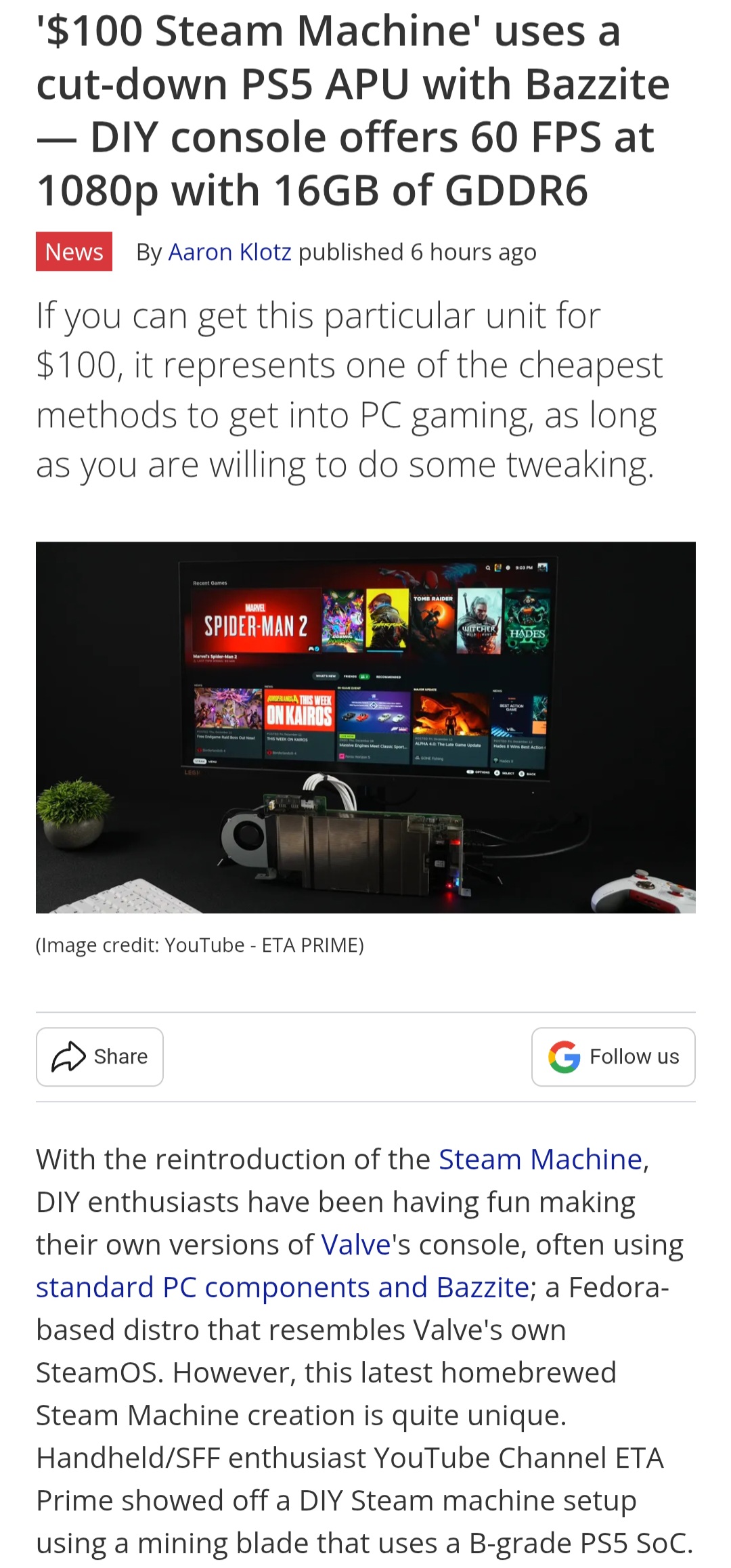 >>523852431>Why not just build a gaming pc for cheap?You can. It just takes courage and technical know-how.https://www.tomshardware.com/pc-components/gpus/usd100-steam-machine-uses-a-cut-down-ps5-apu-with-bazzite-diy-console-offers-60-fps-at-1080p-with-16gb-of-gddr6