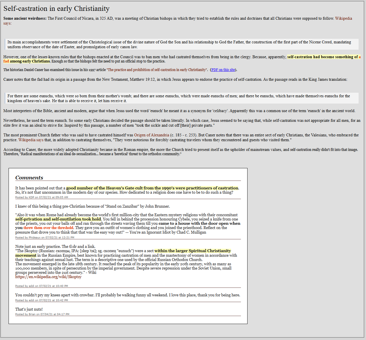 >>523874791they both castrated themselves for starters..https://ia800705.us.archive.org/12/items/miscellanea-gnosticism/caner1997%20THE%20PRACTICE%20AND%20PROHIBITION%20OF%20SELF-CASTRATION%20IN%20EARLY%20CHRISTIANITY%20.pdf>>523874867>>523874767Are you still denying the new testament and the word as it is written by Iesus?
