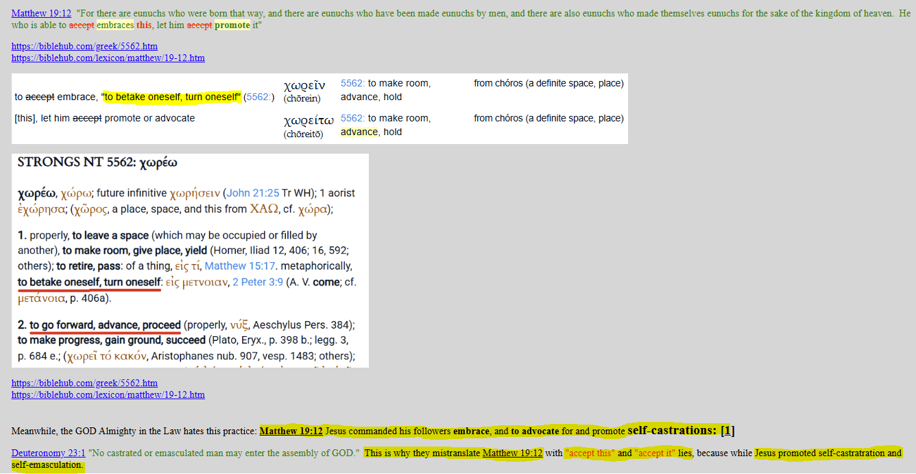 >>523874210don't forget to follow matthew 19:12 kjv to the letter or no heaven for thee.Love thyne tranny