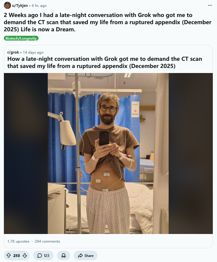 >>523853998A ruptured appendix is extremely painful and can lead to septicemia and death.. that idiot should've simply go to the hospital,no need for AI when you're in debilitating pain lol . Clown world