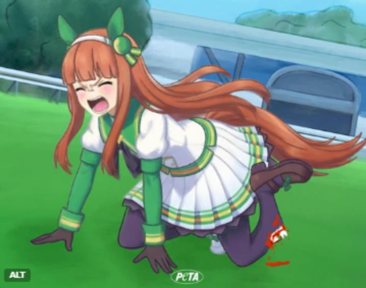 Nothing new. PETA fucking blows. They lose real fights regarding actual animals, because everyone knows how they behave, so they focus on publicity stunts like going after 40K for wearing pelts or now Umas. Where everyone knows the reality of these creatures suffering at points, but few want to see a character they like suffering an injury like an open fracture. Fictional representations are not the real thing.