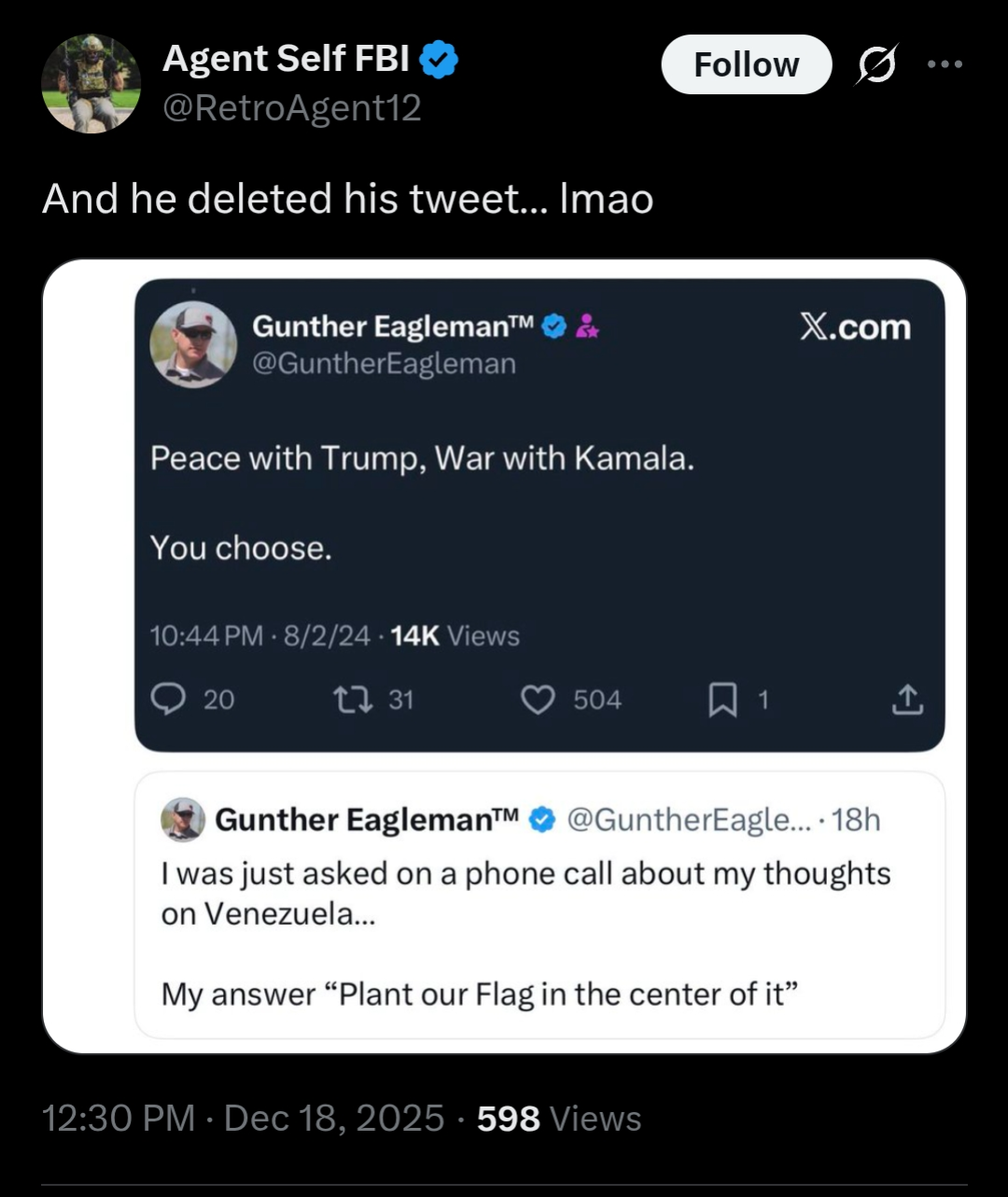 Venezuela is communist. All communists must be exterminated, globally. Simple as. No wars for Israel, but wars against communists yes please. Corpses, American corpses, dead men, in pursuit of killing communism. Justified. Worth it.