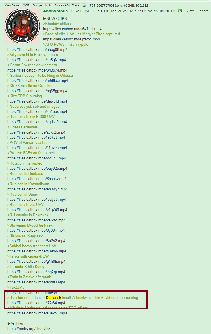 /chug/gers quietly deleted this "proof" of Russia "holding" Kupiansk they had on for two daysOP still quotes ">Battlegroup West maintains control of Kupiansk fully, Colombian mercs, and Ukrainians scattered in Yubileiny neighborhood "AHAHAHAHHAHAHA