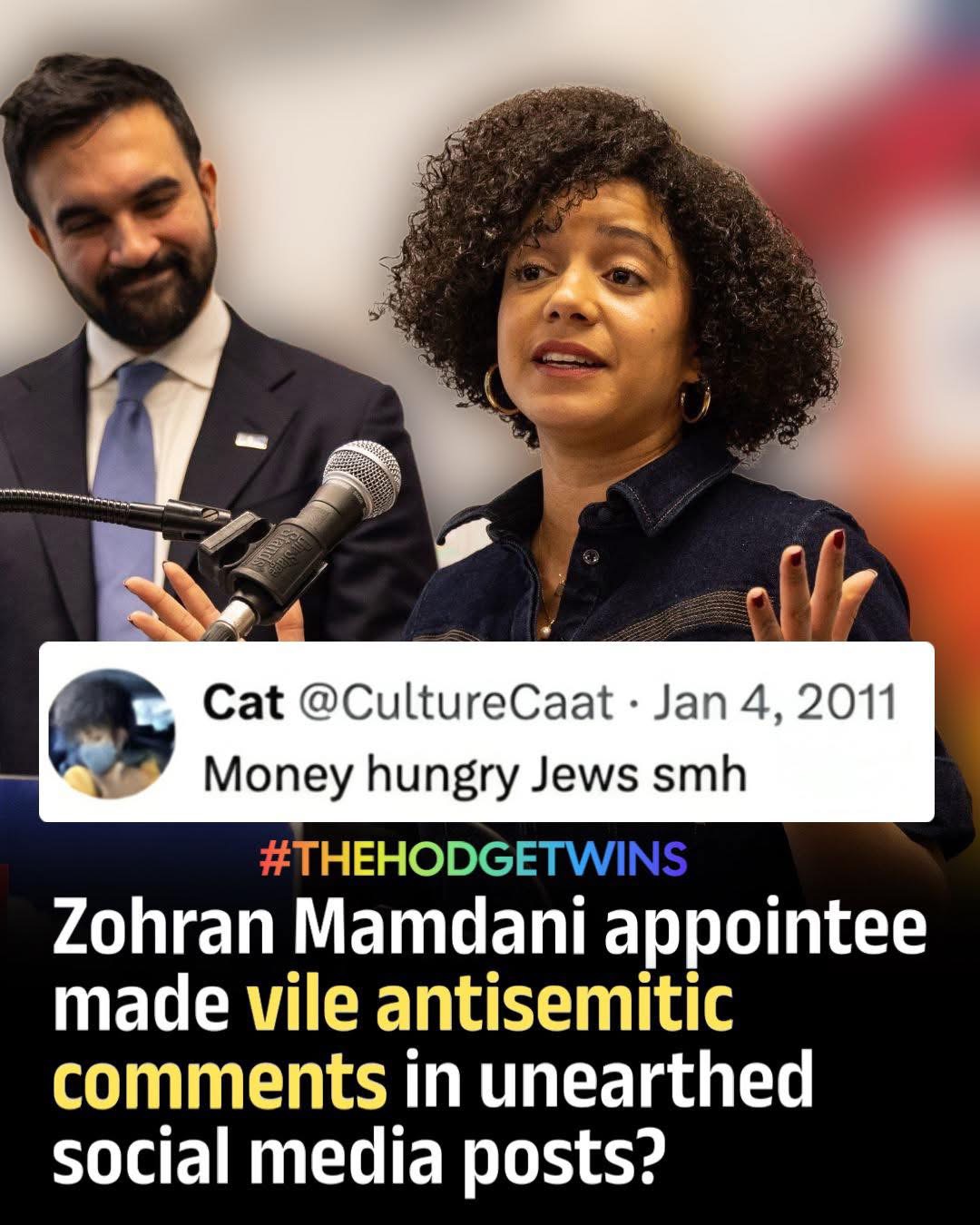 >ZOHRAN MAMDANI APPOINTEE MADE VILE ANTISEMITIC COMMENTS IN UNEARTHED SOCIAL MEDIA POSTS>A senior appointee selected by New York City Mayor-elect Zohran Mamdani is facing backlash after old social media posts resurfaced containing offensive and antisemitic remarks.>The posts — dating back more than a decade — reportedly included derogatory stereotypes about Jewish people. After the comments went public, the appointee deleted her social media account and issued an apology, claiming the remarks do not reflect her current views.>Mamdani’s transition team condemned the posts, saying they are “unacceptable” and do not align with the values of the incoming administration. Still, critics are questioning how the remarks were missed during the vetting process and whether the appointment should stand.