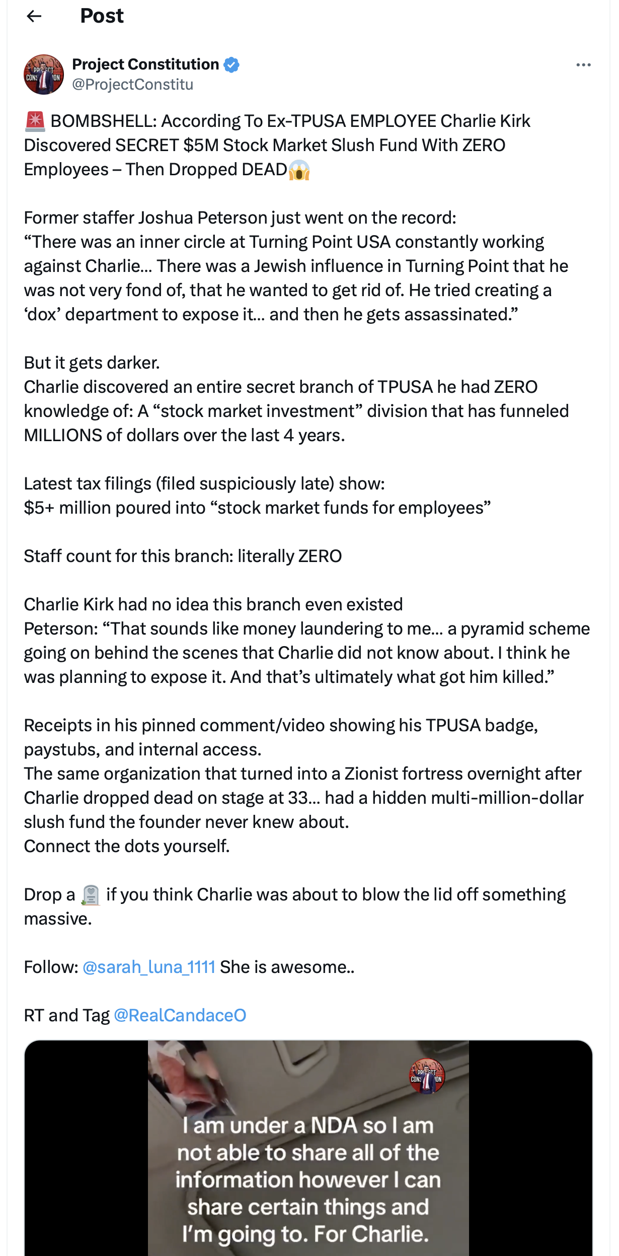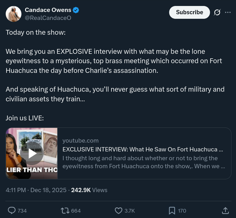 for those who have no idea what's going on. candace had on a guy today who said he saw erika kirk at a huge military intelligence meeting he wasn't supposed to see, along with charlie's head of security, a congressman, and a shitload of high level officers, 24 hours before charlie was killed.