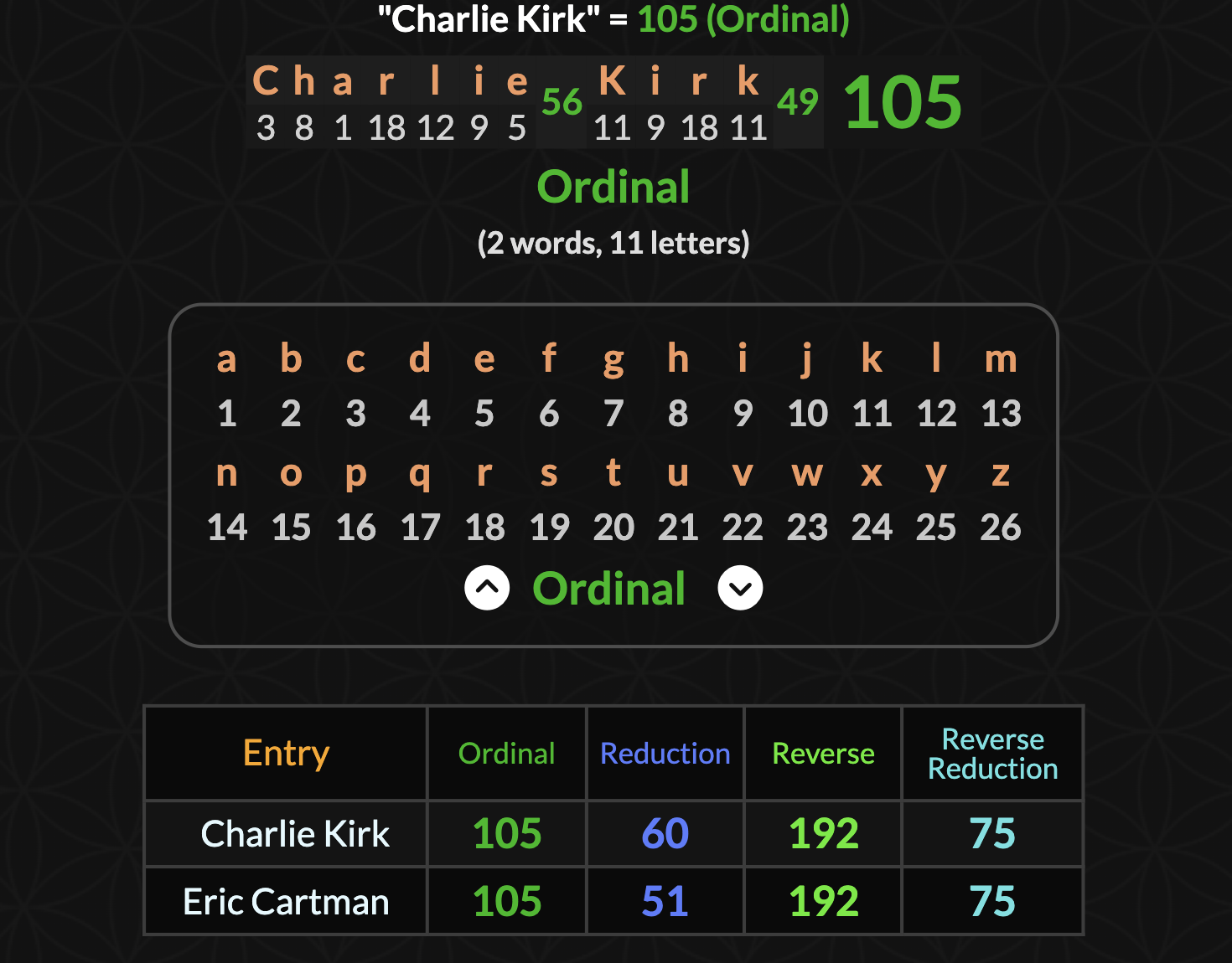 >>523880272I read that gematria only works on jew language but I don't believe it because there are too many "successful results" like this. Just a cohencidence I'm sure.