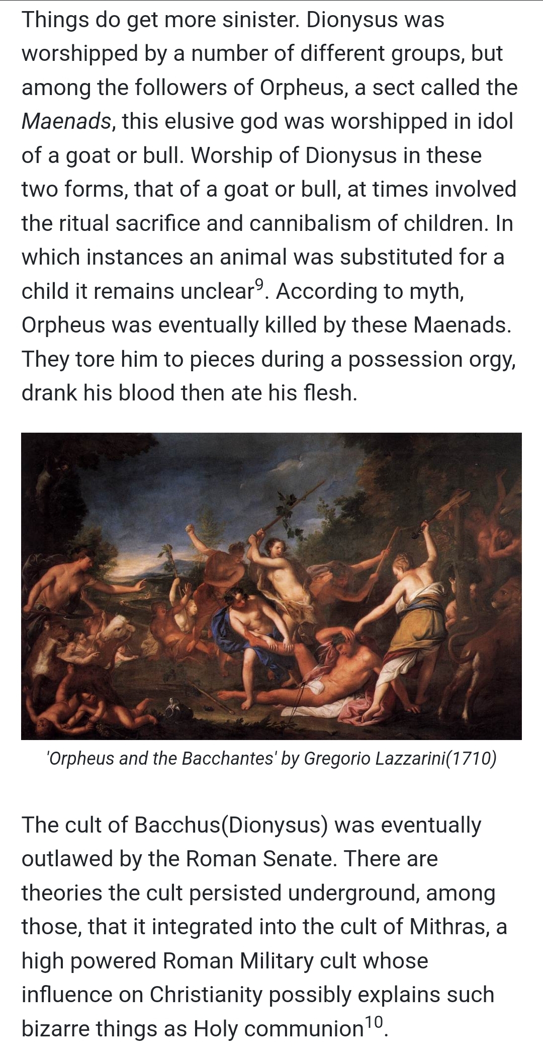 >>523876907Albert Hamilton Fish was earlier and arguably the absolute worst. If I had to rank worst KNOWN he's first, the Gacy, then probably the Toybox guy or the supposed 'Maddog' McKennaThis website has some excellent articles, but their explanation of the Orphic cults/Minotaur/Dionysis/Mathias shit and how it connects the pre-Roman human sacrificial rites to post 360ad and up through the 17-1900s. If you look deeper (which many a brave anon has and gone fully mad) you end close to a Kyle Odom belief. There's things that live underground in water flooded tunnels, and there's something about them that's not fully physical. The most terrifying situation I ever experienced was sleeping outside immediately at the beach on man-made lake that connects to old coal mines. I walked to the bathroom and left a junky plated ring on my picnic table bed. I realized I left it and got extremely worried and hurried back, about 100', as I get around the weeds on the shoreline everything kind of glimmered violet/purples and I saw a strange looking white cat swimming out in the lake, believe it was Sept and rather chilly. The ring turned my finger green for the first and only time it ever did. Stone cold sober, until I toked to ease off that crazy shit. Either that night or the next night I had a terrible dream that was insanely real, like woke up conscious real. Creepiest fat old guy in an old style suit, Mason like, was sneakin up on me and stopped just outside the tobacco smoke. He was as worried as I was, maybe even more
