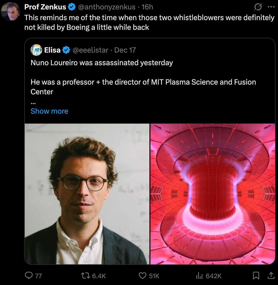 >>523890873>also shot MIT professor>Nuno F.G. Loureiro>last name of portugese originseems like he just had some university beef