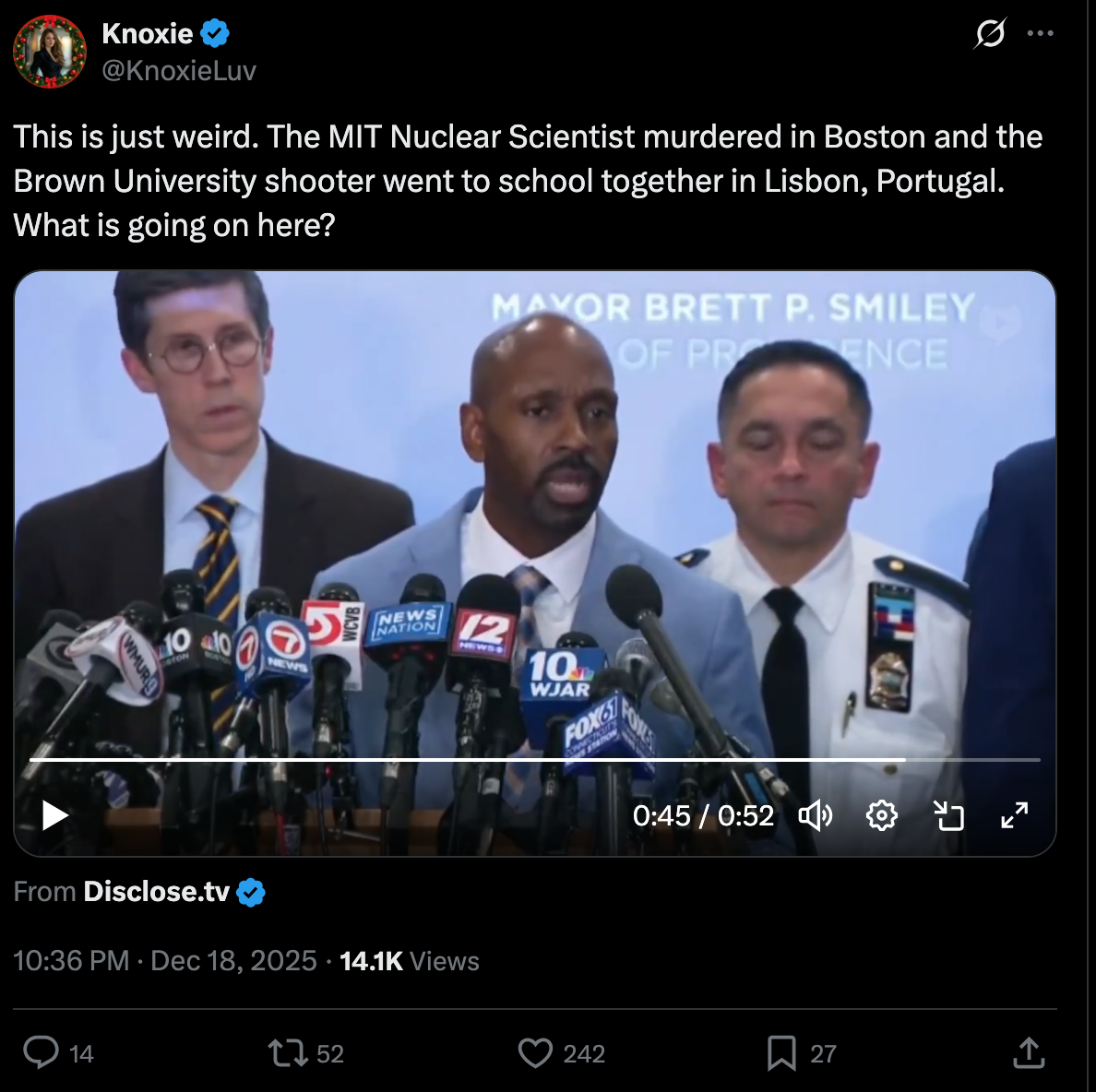 Feds say the MIT Nuclear Scientist murdered in Boston and the Brown University shooter went to school together in Lisbon, Portugal. https://x.com/KnoxieLuv/status/2001859174175773056