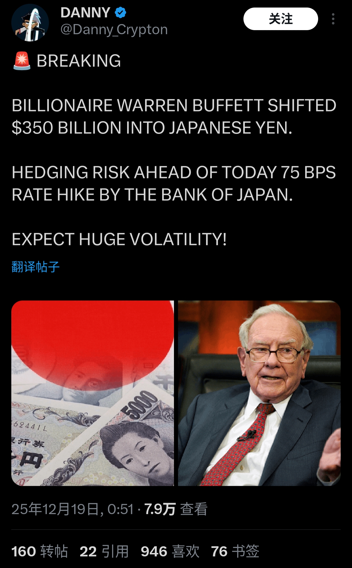Japanese yen interest rate hike of 75 basis points