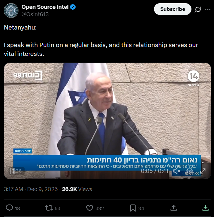 This is a fake headline. If Netanyahu even mentioned Israel killing Charlie Kirk, the rumor would spread so fucking fast because of how bad he looks publicly right now.It is true though, they did kill him.