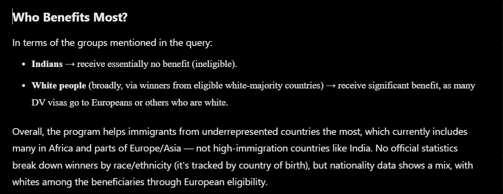 >>523907842>>523901401He's correct, though. India is excluded from the lottery because they're already overrepresented